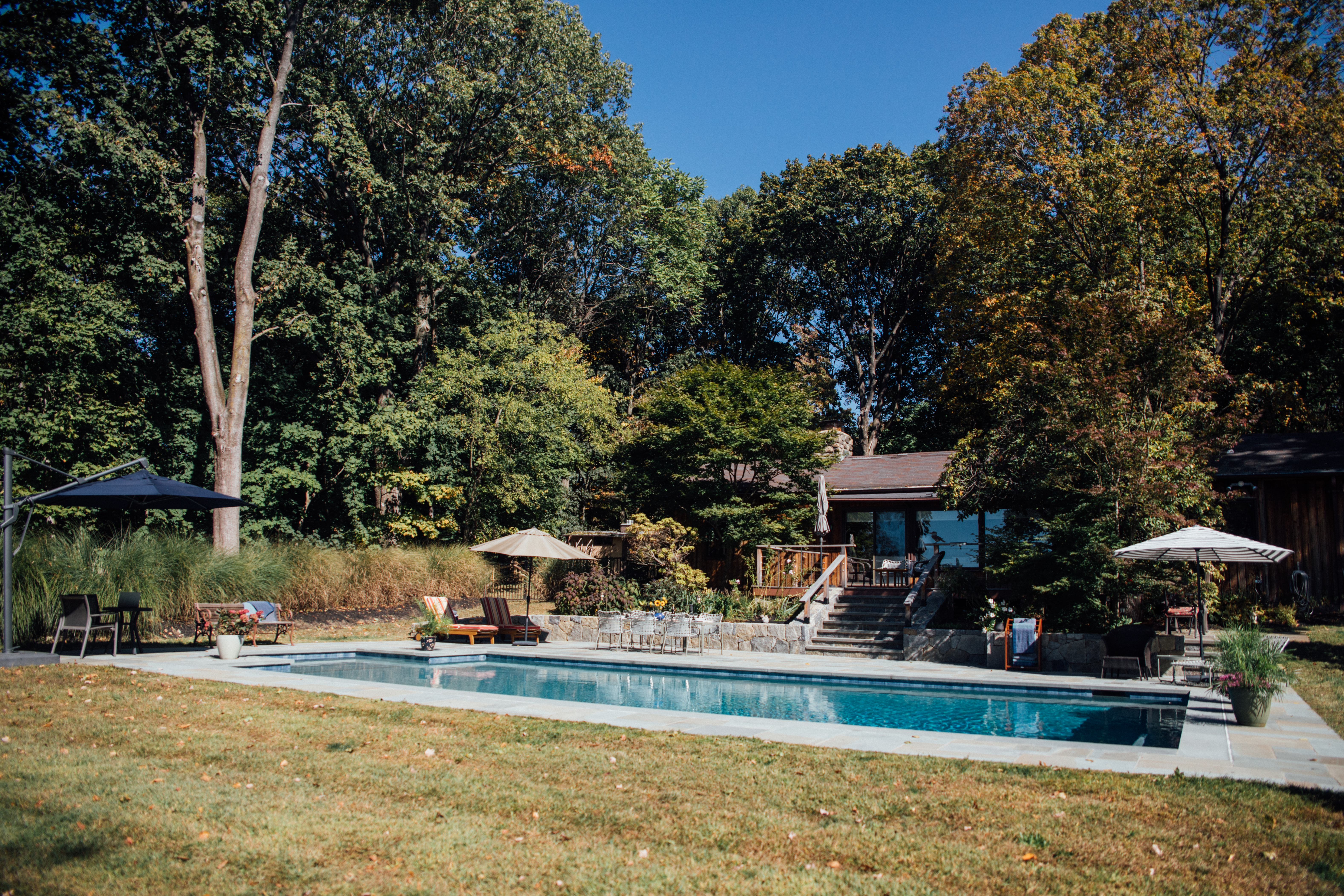 Tucked on a forested hill at the end of a private road in Crotonville, Willoway is within easy reach of New York City. Croton-Harmon station is just a five-minute drive from Willoway, and the city is less than an hour’s journey by train. Wake up in the morning and see how many Willoway bird songs you can recognize as you have tea or coffee on the wood or stone decks. A day out? -Take a stroll on the Old Croton Aqueduct to Croton Gorge/Dam. -Visit Kyukuit and explore the Rockefeller Estate. -Kayak in the Hudson. -Hike in Bear Mountain and have dinner in Cold Spring -Halloween: visit Sleepy Hollow and The Blaze in the evening.